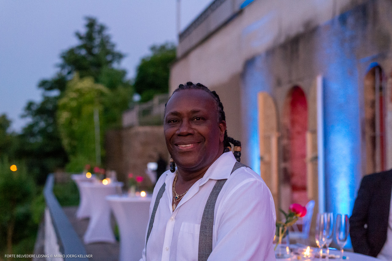 Elio Rodriguez Luis, Mitglied des weltweit erfolgreichen Quintetts Klazz Brothers & Cuba Percussion, auf den Terrassen des Forte Belvedere in Leisnig. Foto © Mirko Joerg Kellner.